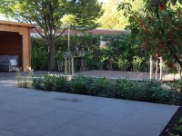 In samenwerking met de klant een ontwerp en realisatieplan gemaakt voor het volledig vernieuwen van hun tuin. In dit project zijn verschillende tuinelementen verwerkt; bestrating met keramische tegels, muurelementen, verhoogde vlonder, overkapping, betongaasschutting en beplanting.