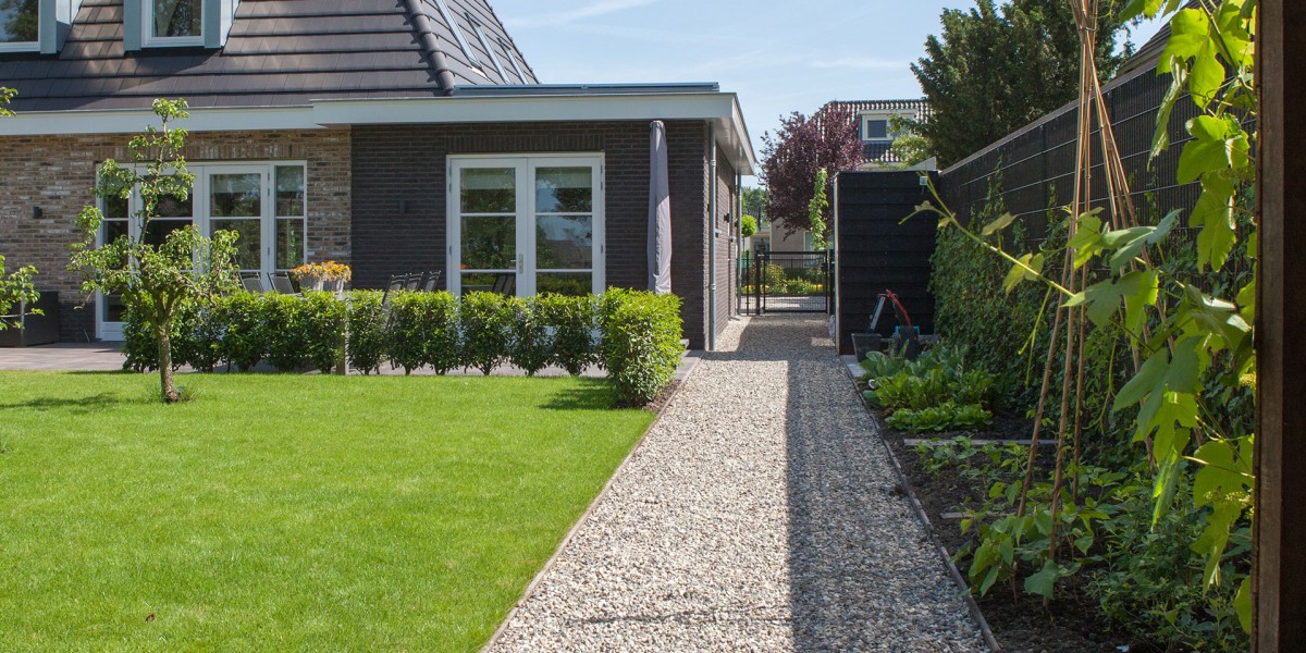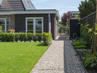 Voor een nieuwbouwproject de aanleg van de tuinen gerealiseerd van beide buren. Ondanks de verschillende wensen aan de tuin, is het gelukt om de uitstraling van de tuinen bij elkaar te laten aansluiten. Voor dit project is met de beplanting rekening gehouden met het creëren van beschutting met behoud van vrij uitzicht en onderhoud vriendelijkheid.