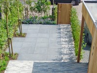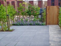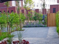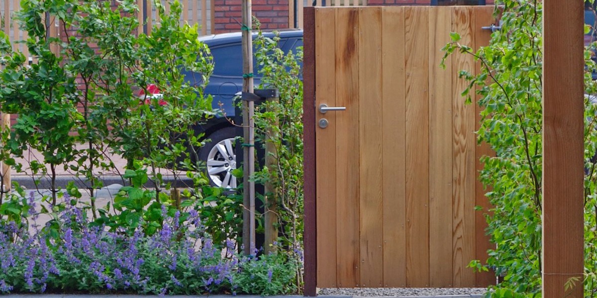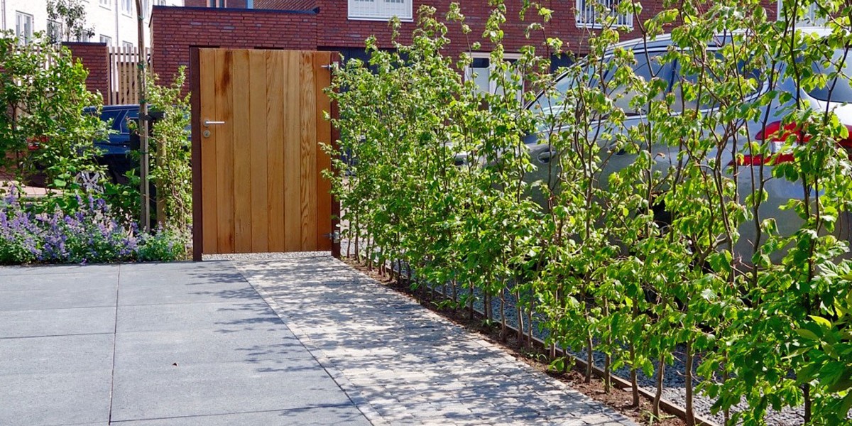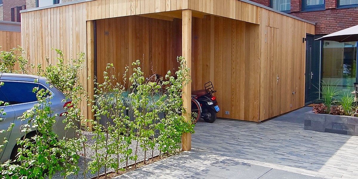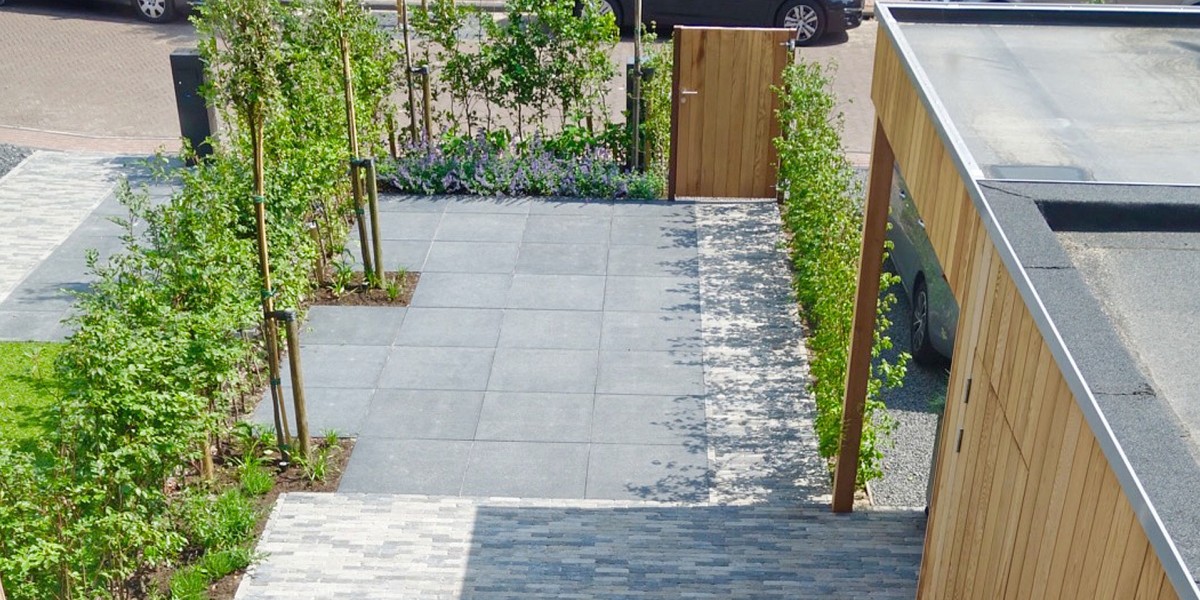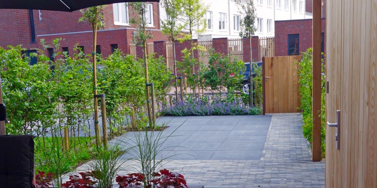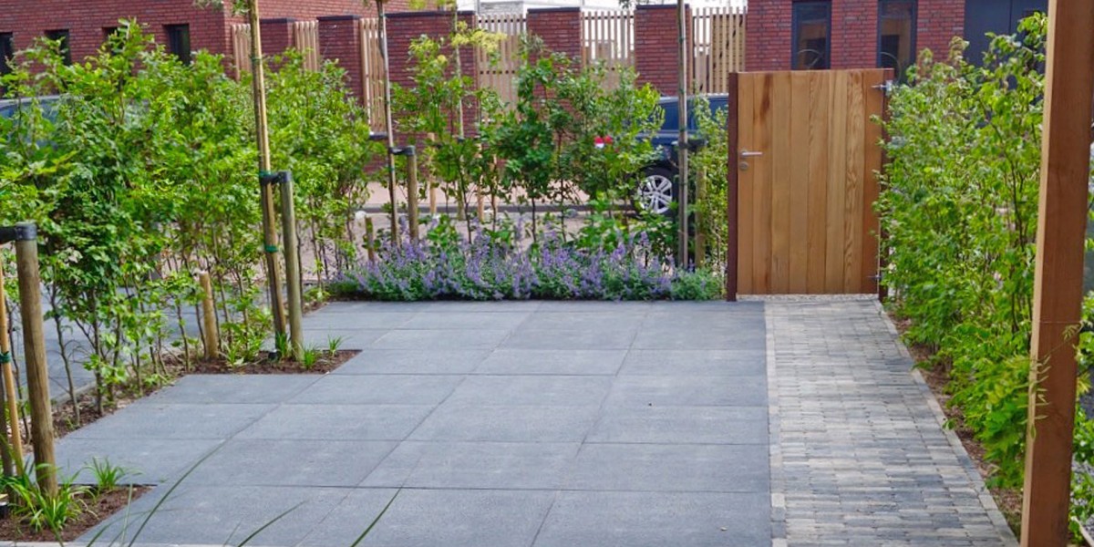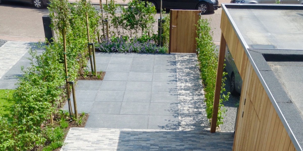 Voor dit nieuwbouwproject in Waterrijk in Woerden het ontwerp en de aanleg van de tuin gerealiseerd. Om de tuin bij het huis aan te laten sluiten, is ervoor gekozen om de poort en overkapping in dezelfde stijl (red ceder hout) te maken. Verder is aan de wens voldaan om in deze voortuin ook zitgelegenheid te creëren met enige privacy.
